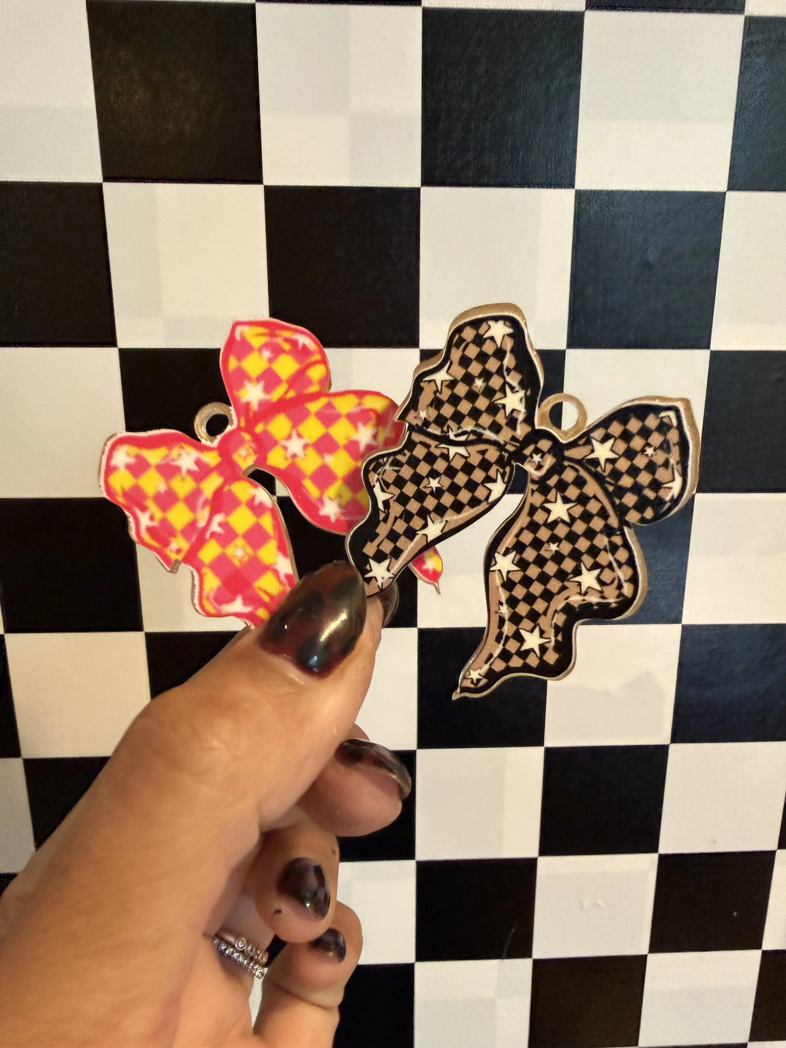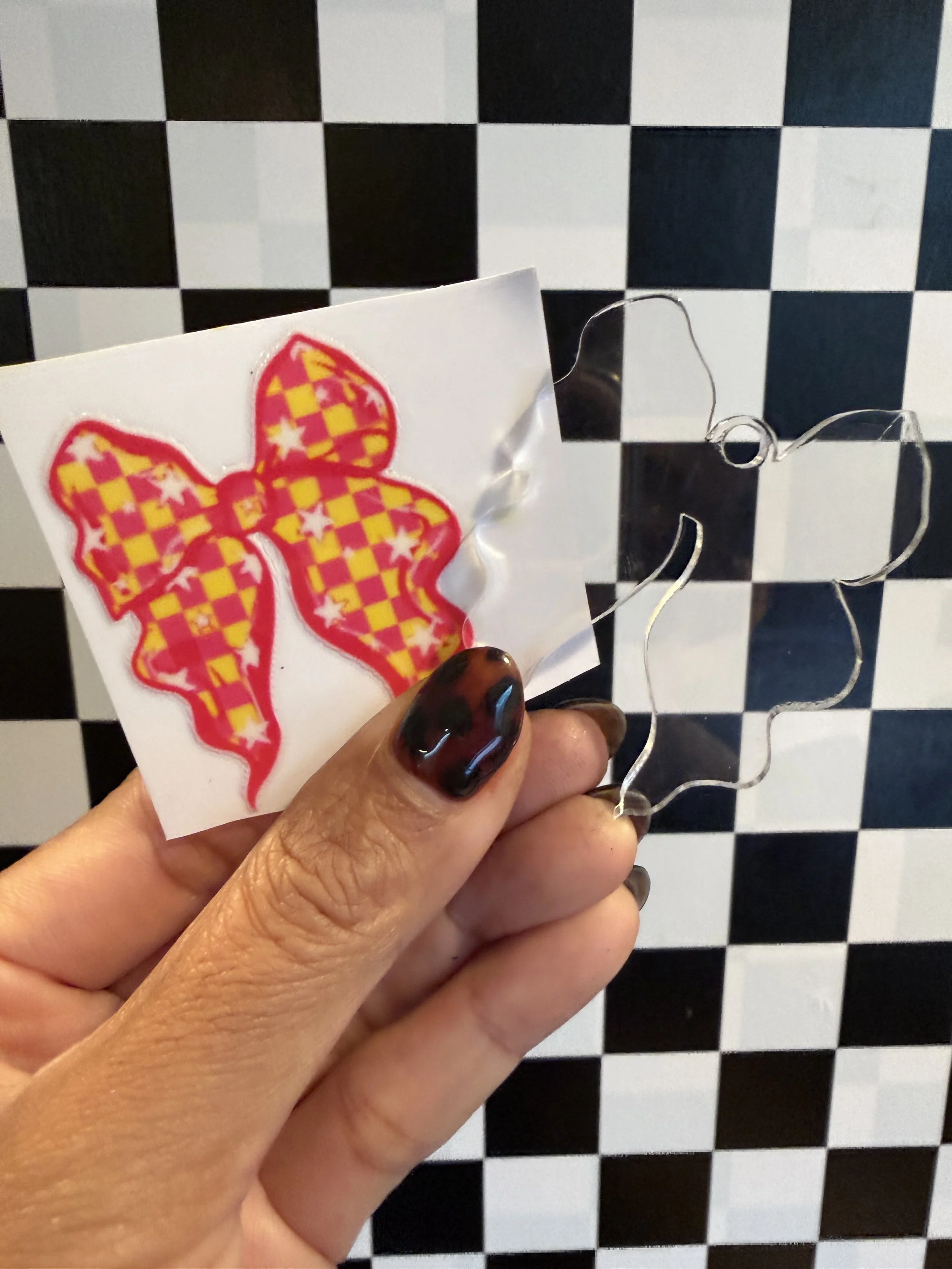Brown Checkered Bow UVDTF and Acrylic Blank